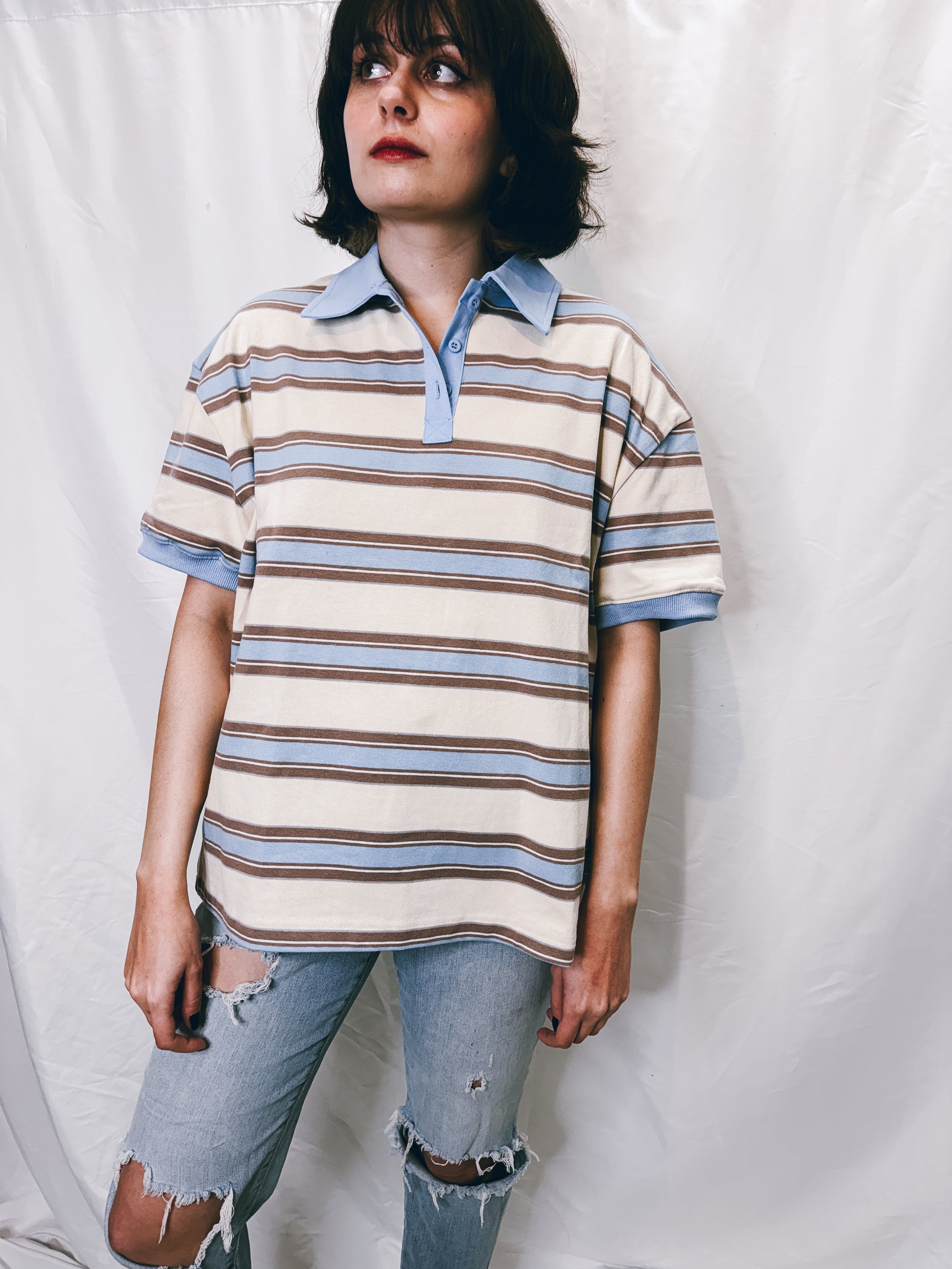 Blue, brown, and cream striped