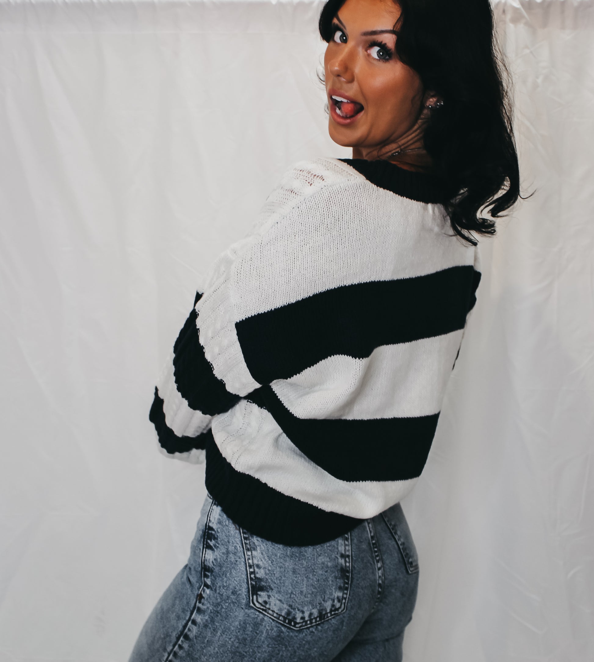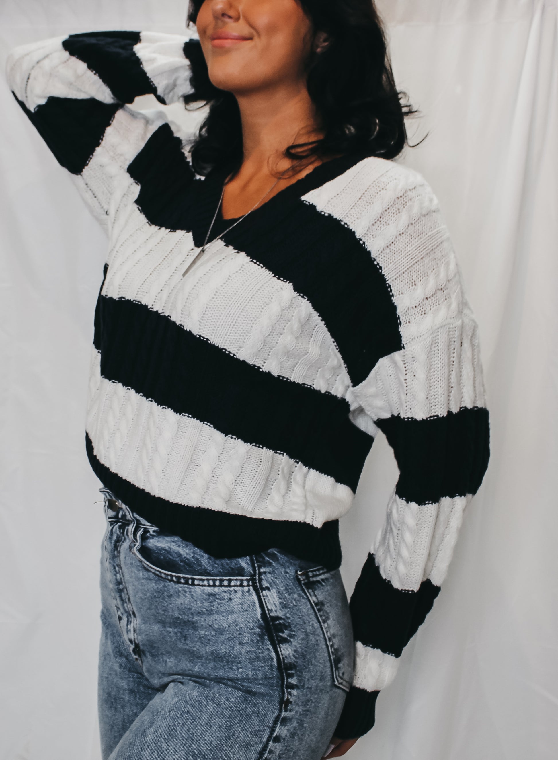 Blue and white stripe varsity sweater